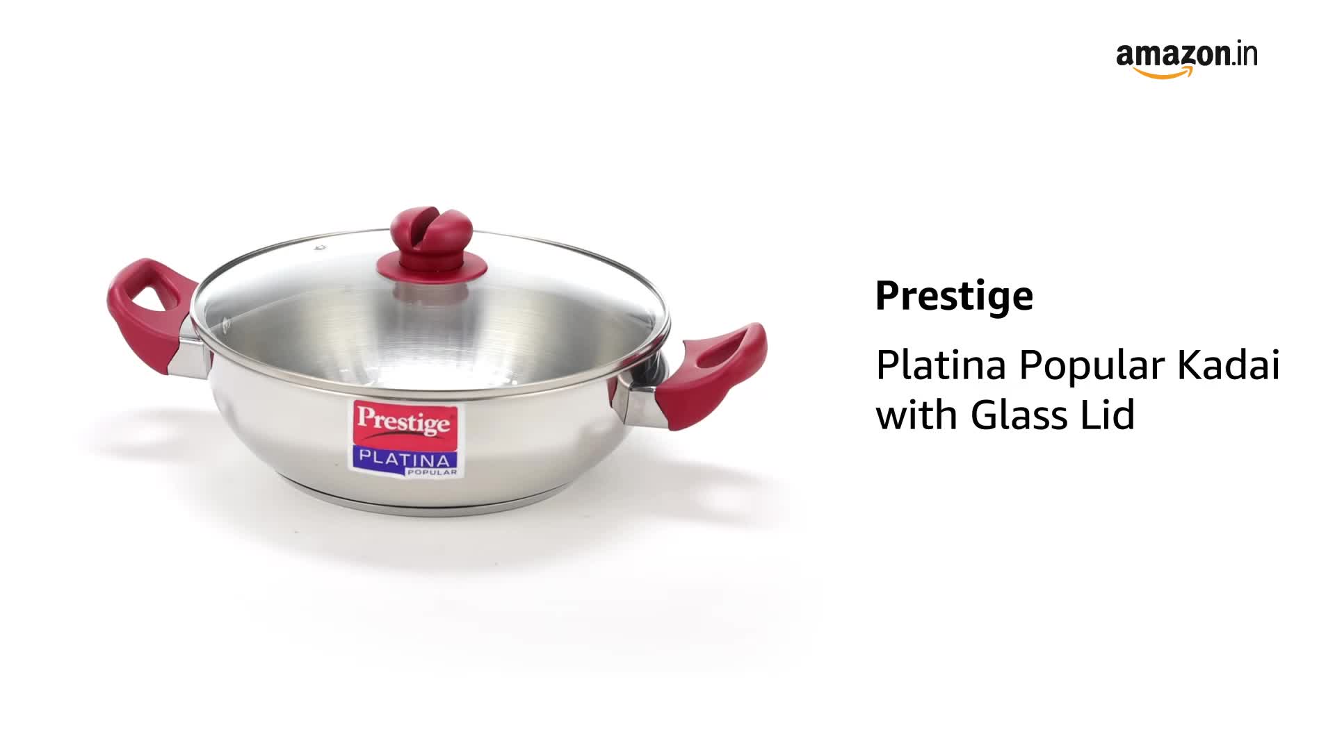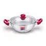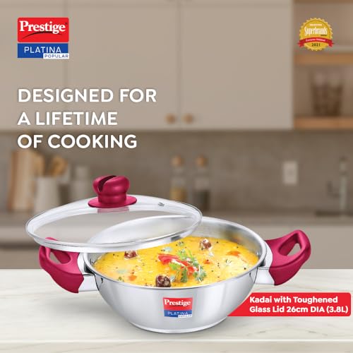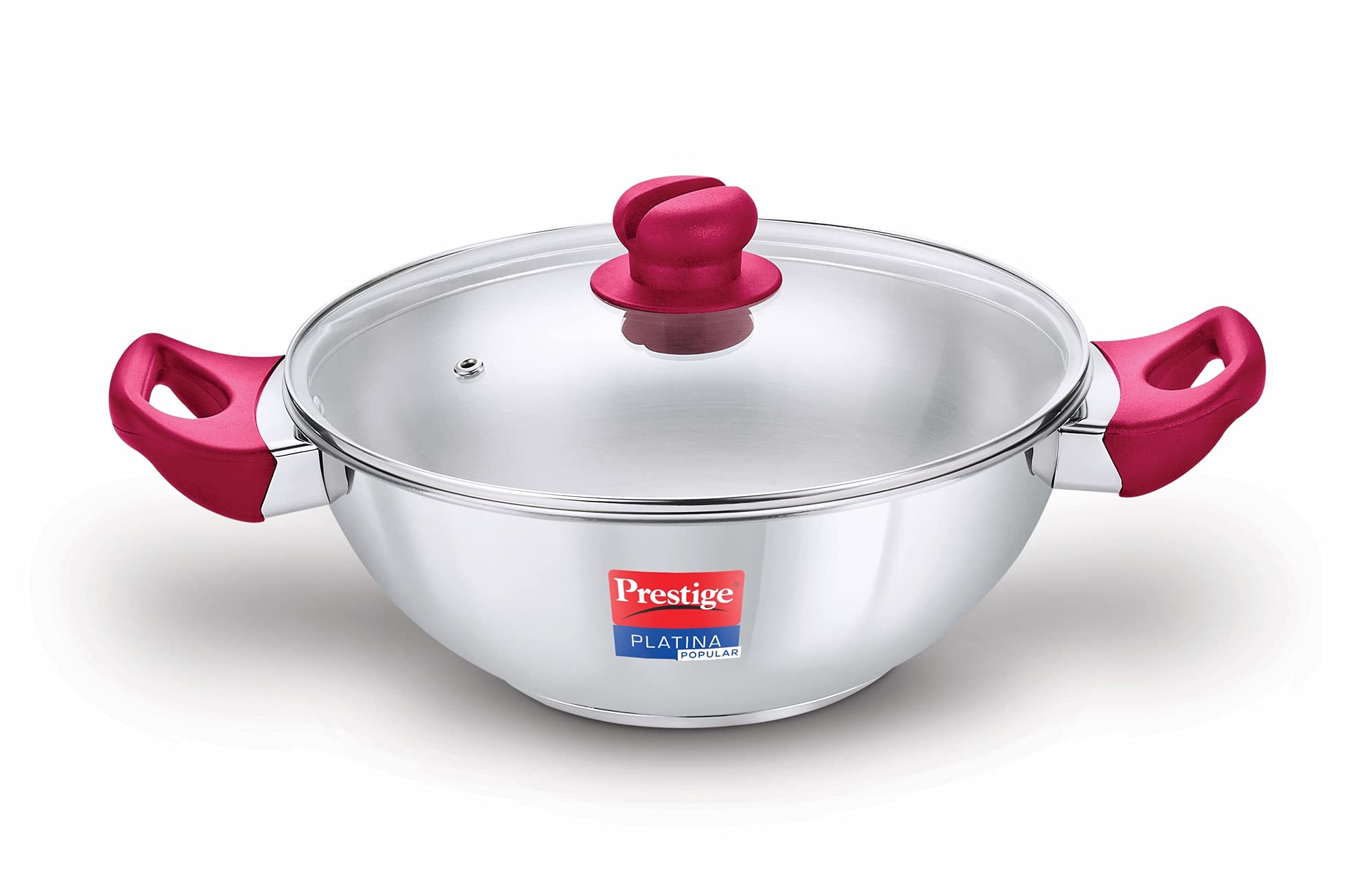 1 x Prestige Platina Popular Stainless Steel Gas and Induction Compatible Kadai with Glass Lid 260 mm