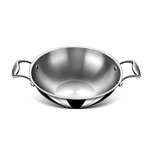 German technology has come together with Indian craftsmanship to create a world class quality of cookware that is proudly built in India. Whether you prefer cooking in a traditional Indian kadhai or are looking for a kadhai for a big family the Stahl Artisan range is passionately built to suit all kinds of Indian cooking. Great to Make : Stir-fry vegetables breakfast delicacies like poha upma lentils curries etc. The Kadhai is made in the finest quality of triply stainless steel. The middle layer of triply is a heat conducting layer which is sandwiched between food grade SS 304 surgical stainless steel and induction friendly magnetic stainless steel. It uses 20% less oil than normal cookware. Stahl cookware is the only triply cookware that boasts of investment cast ergonomic handles that are a perfect grip in your hands. The heatproof handles ensure that your hands dont feel the heat. The kadais seamlessly rounded edges enable a spill proof smooth pour.