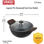 Vinod Legacy Pre-Seasoned Cast Iron Kadai with Glass Lid 24 cm Diameter (3.3 Litres Capacity) Non Toxic Enamel Free - Black Gas Stove and Induction Friendly
