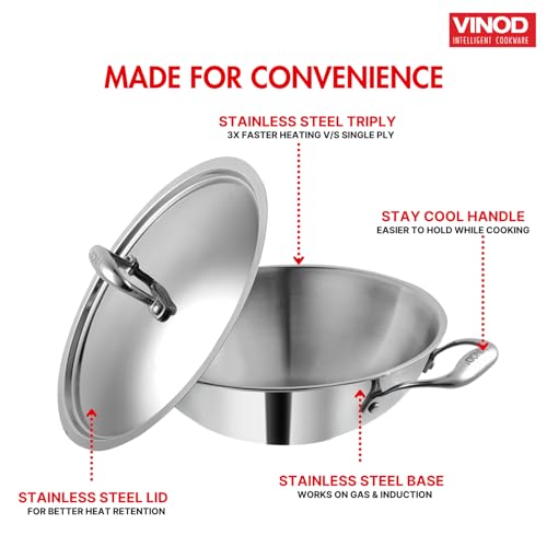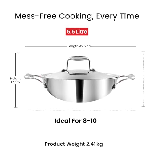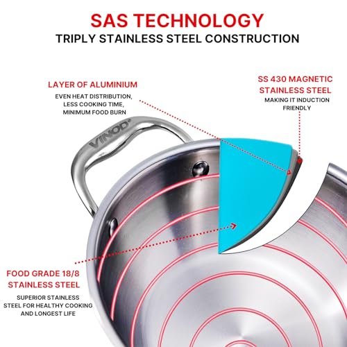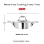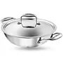 Vinod Stainless Steel Platinum Triply Kadai With Lid 32 Cm 5.2 Liter Silver