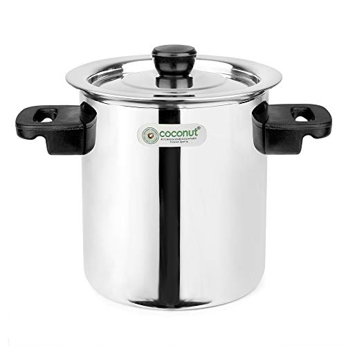 Coconut is range of innovative and quality products for Home and Kitchen. The Milk Boiler is made from Double wall Stainless Steel Milk Pan is crafted for everyday use and it also takes care of your health and hygiene as it is made from Food Grade Quality Stainless steel. This Milk Boiler is very sturdy and it is made up of Thicker Guage for high durability. It is very easy to clean. It is a Rust proof and hygienic. Whistle for releasing steam and sturdy cool touch Bakelite handles & knobs . Product Content - Coconut Stainless Steel Traditional Milk Boiler With Lid - 1 Litre ( 1000ML) - 1 UNIT.