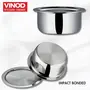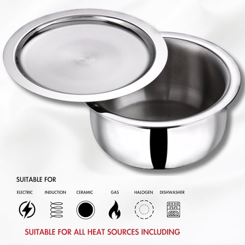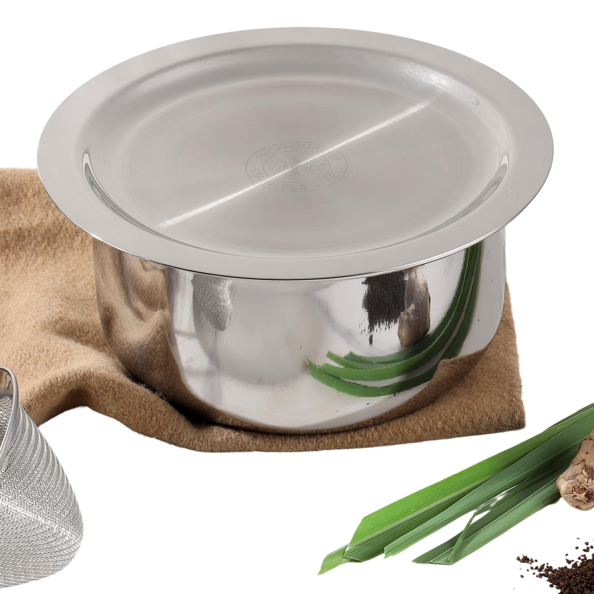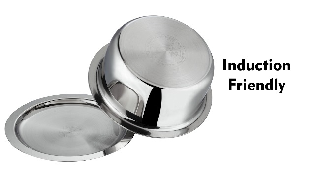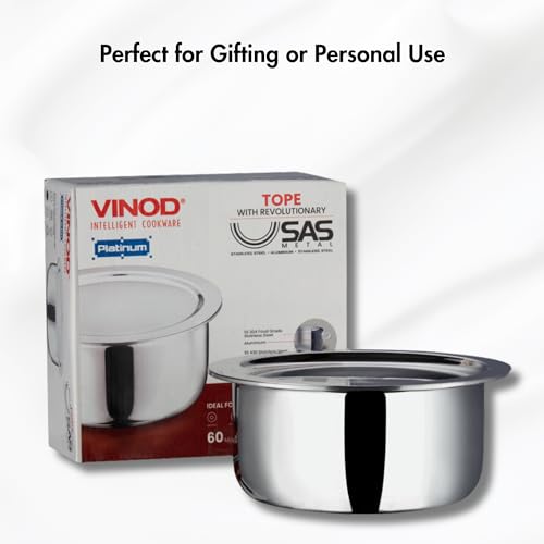 Vinod Platinum triply stainless steel series is made up with SAS technology which is a triple layer construction of stainless steel aluminium and stainless steel . The inner layer is made up of food grade 18/8 stainless steel which is hygienic stainless steel and rust free.The middle layer is consists of aluminium throughout this ensures in even heat distribution and uniform cooking of food. The third layer is made of 430 stainless steel for induction compatibility. This triply stainless steel tope is ideal for making tea coffee rice for boiling milk or for simply storing your food.