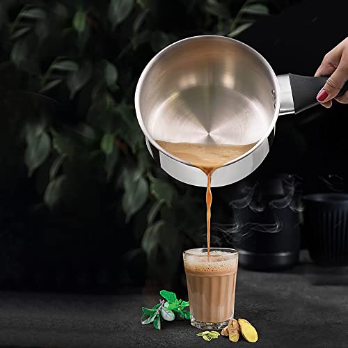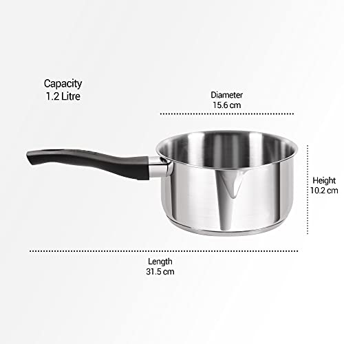 Milton Pro Cook Stainless Steel Tea Pan, 1.2 Litre (14 cm), Sandwich Bottom Sauce Pan, Gas Induction Base Chai Pot Milk Boiler with Handle (2 Years Warranty)