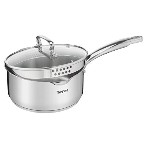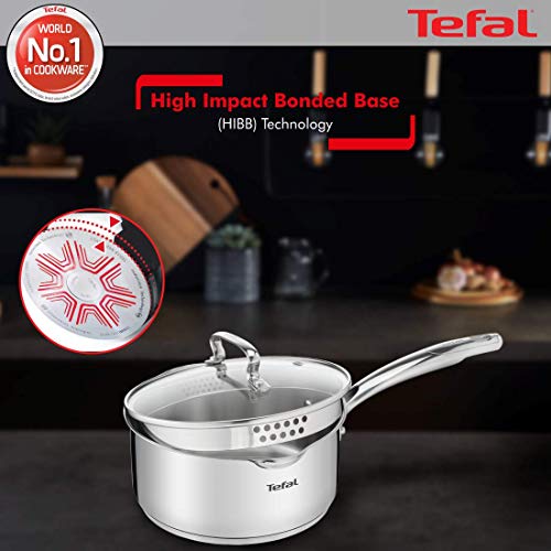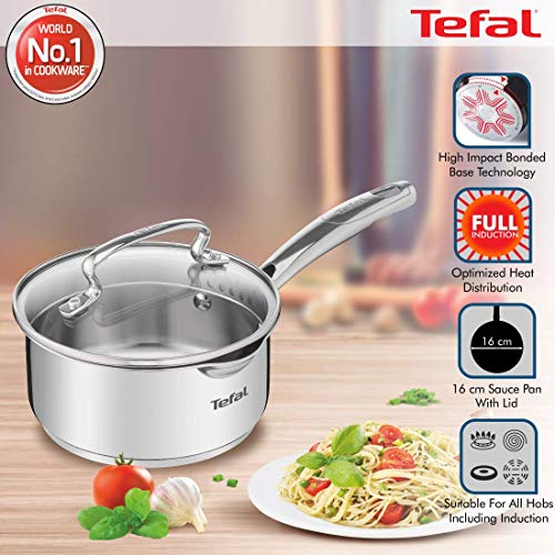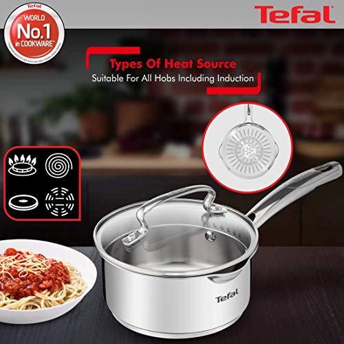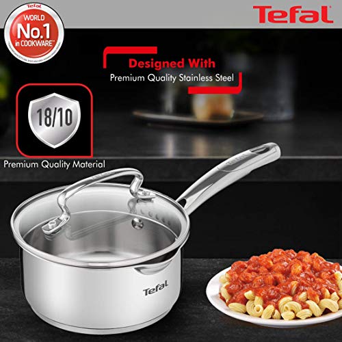 Tefal Duetto Plus Stainless Steel Sauce Pan 16 cm with Glass Lid Silver