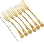 Prisha india craft brass cutlery fork modern kitchen brassware set for people who want to offer their loved ones the best dining experience. A set of 6 brassware dinner fork that will impress your friends and family with their unique design. Once you hold them you will understand. A blend of modern simple and all-time classic design you will never have to worry that your dinner fork will go out of style.