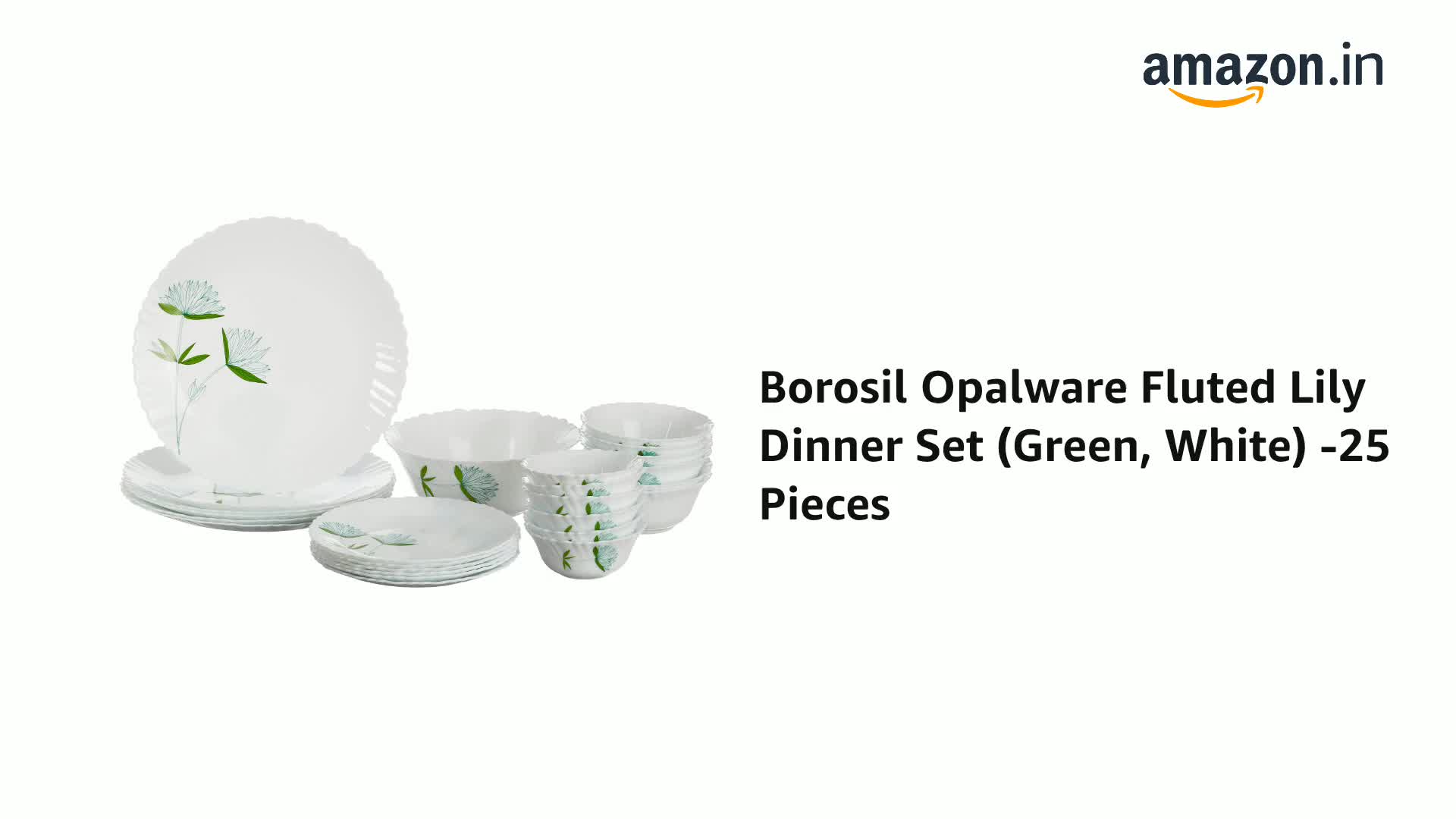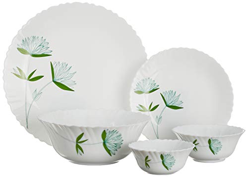 Borosil Opalware Fluted Lily Dinner Set (Green, White) -25 Pieces