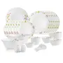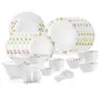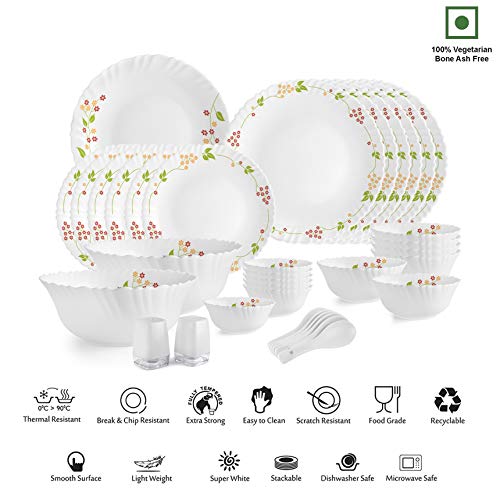 6-Pieces Full Plate(10 inch) 6-Pieces Quarter Plate(7 inch) 6-Pieces Veg Bowl (150ml- 4 inch) 6-Pieces Soup Bowl(6 inch) 2-Pieces Serving Bowl(7 inch) 1-Piece Round Platter(11 inch) 2-Pieces Salt and Pepper Shaker 6-Pieces Spoon