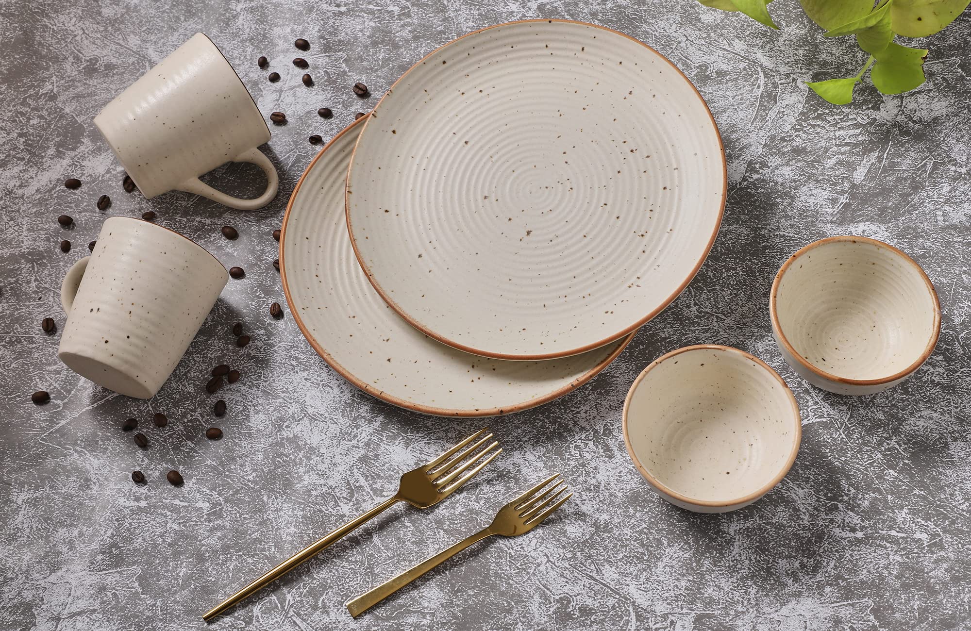 Crock Comforts - Handmade Couple Goal Dinner Set Ceramic Including Stoneware Dinner Plates(10 inch) with Serving Bowl and Coffee Mug(Set of 2, Microwave & Dishwasher Safe, CC- CGWM)