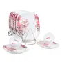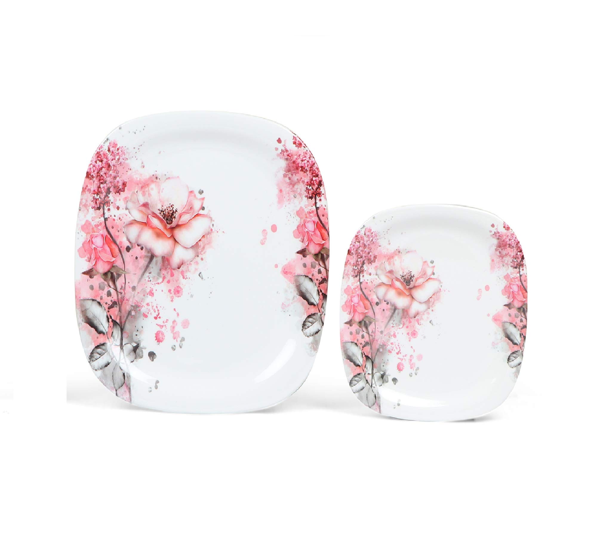 Golden Fish White Base Floral Printed Melamine Full Size Square Dinner Plate(11 Inch), Veg. Bowl & Quarter Plates(7 Inch) Mini Dining Set (Set of 18)