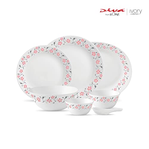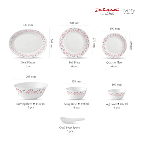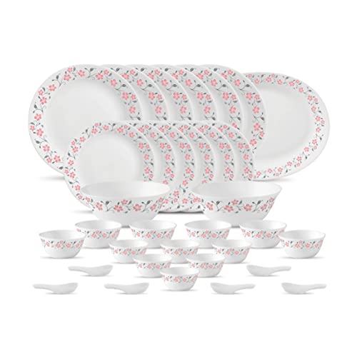 La Opala Diva Ivory Collection Opal Glass Dinner Set 33 pcs Grace Red White