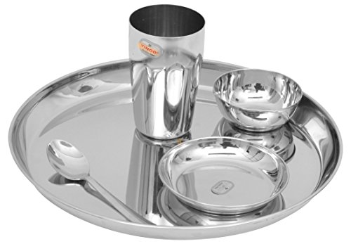 Vinod Stainless Steel Dinner Set, 5-Piece, Service for 1, Silver, V.Thali Set (Kb 1) 13
