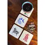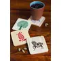 "IVEI - ""I Value Every Idea"" is a society working towards the upliftment of artisans in Sitapur Uttar Pradesh. We work towards a long term aim of providing employment and sustainable living solutions to the people here. Our designers work with rural artisans to create well designed high quality utility products for home and office ideal for both gifting and personal use. Handicrafts of Uttar Pradesh is a group of handicraft lovers from Uttar Pradesh working towards promotion of arts and artisans. This range of products is created in collaboration with them and SAFAR and all funds from the profit of this collection would be donated to a women artisan based self-help group. A set of four wooden coasters made in high quality wood. The coasters are printed with designs inspired by the traditional Sanjhi art from Mathura. These make for a perfect thoughtful gift to your family and colleagues. These can be wiped clean with a wet cloth and can be occasionally washed too. Dimensions (in) : 3.25*3.25*.25 each"