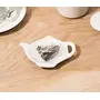 KHURJA POTTERY Ceramic tea bag holder shaped like a teapot complements every tea party and is a thoughtful addition to tea-time. More than being a great decorative kitchen accessory or brunch nook the tea bag holder is fit to serve sugar cubes biscuits or bite-sized savouries. Minimize clean up after tea-time and avoid staining table tops with stir spoons and used tea bags. Made from fine Ceramic crisp white tea caddy is shaped with recesses to catch drips from tea bags and contain any runoff. Enjoy easy mess-free steeping!