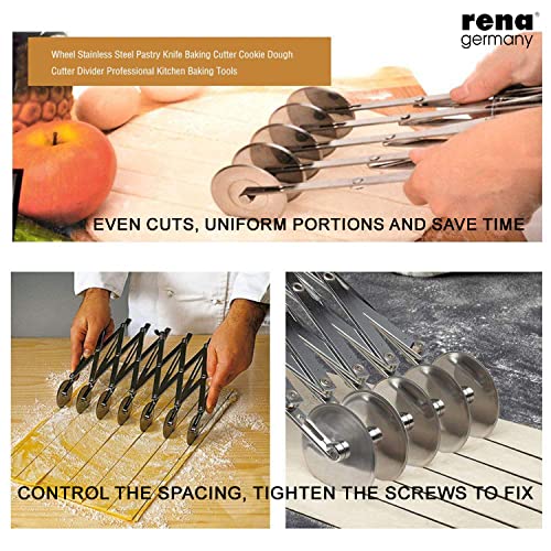 Rena Germany Multiple Wheel Dough Cutter - Kaju Katli/Pastry Sheets/Samosa Patti/Pasta Cutter - with Expandable Divider (6 Wheels)