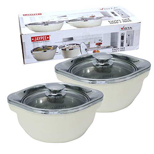 Jaypee Vista casserole is crafted out of best materials with elegant crome plated top with knob and a transparent glass lid. Now you can cook & display with pride the appetising food with your fine finish garnish and flourish with special toppings. A safety hole in the glass lid not only makes it antilock it also lets out the aroma. The inner container is made out of stainless steel. The plastic outer body is of virgin plastic with beautiful graphic exteriors which is inspired by creamic surfaces. Material Used: Top-PP Ring-ABS(chrome plated) Base-PP Container-Stainless steel and insulation is of polyurethane material. Food grade BPA Free.