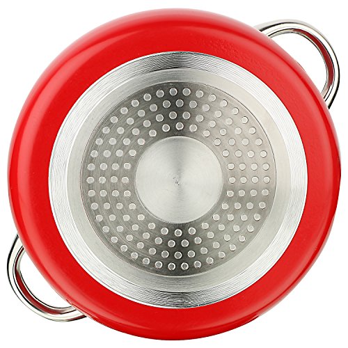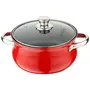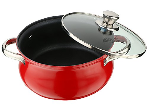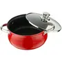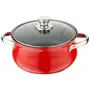 Pristine Aluminum Induction Base Mirror Finish Non-Stick Belly Casserole with Knob Glass Lid (2.5L Red)