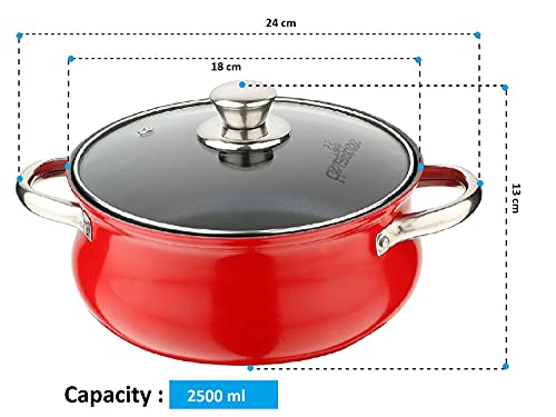 Package Contents: 1 Non Stick Belly Casserole and 1 Knob Glass Lid Capacity : 2.5 Litres