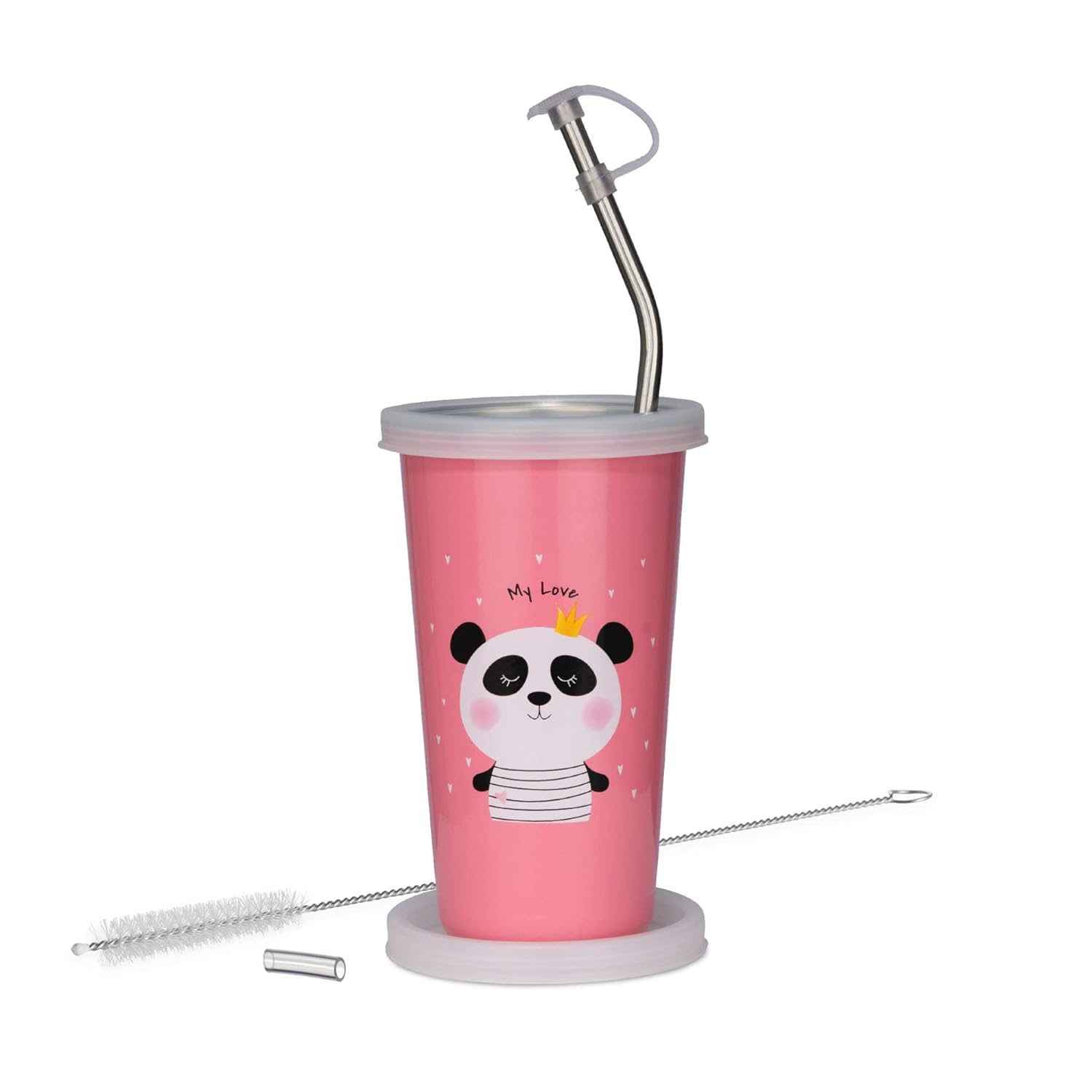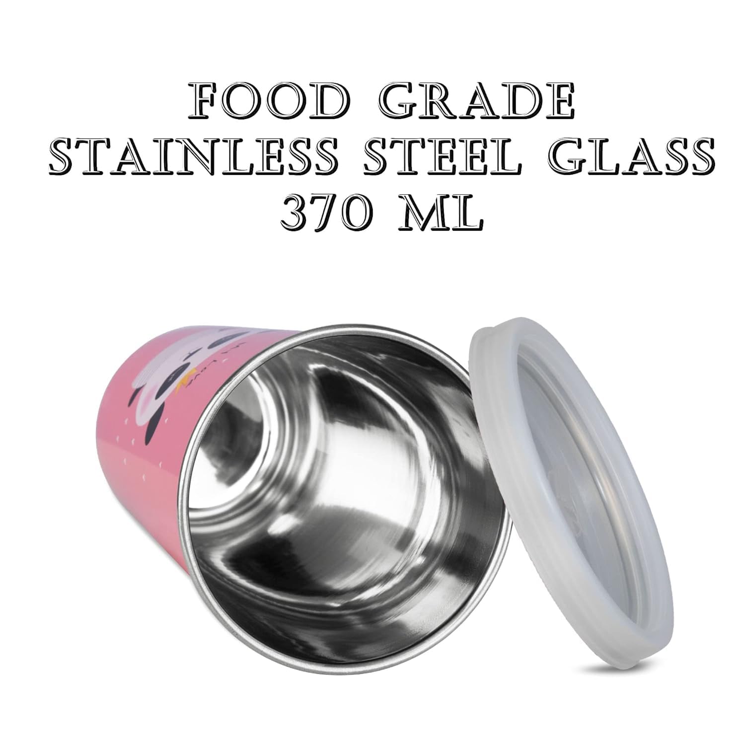 AVK Enterprise Kid's Stainless Steel Airtight Leakproof Sipper Glass with Straw and Lid for Milk Water Juice (Pink 370 ml)
