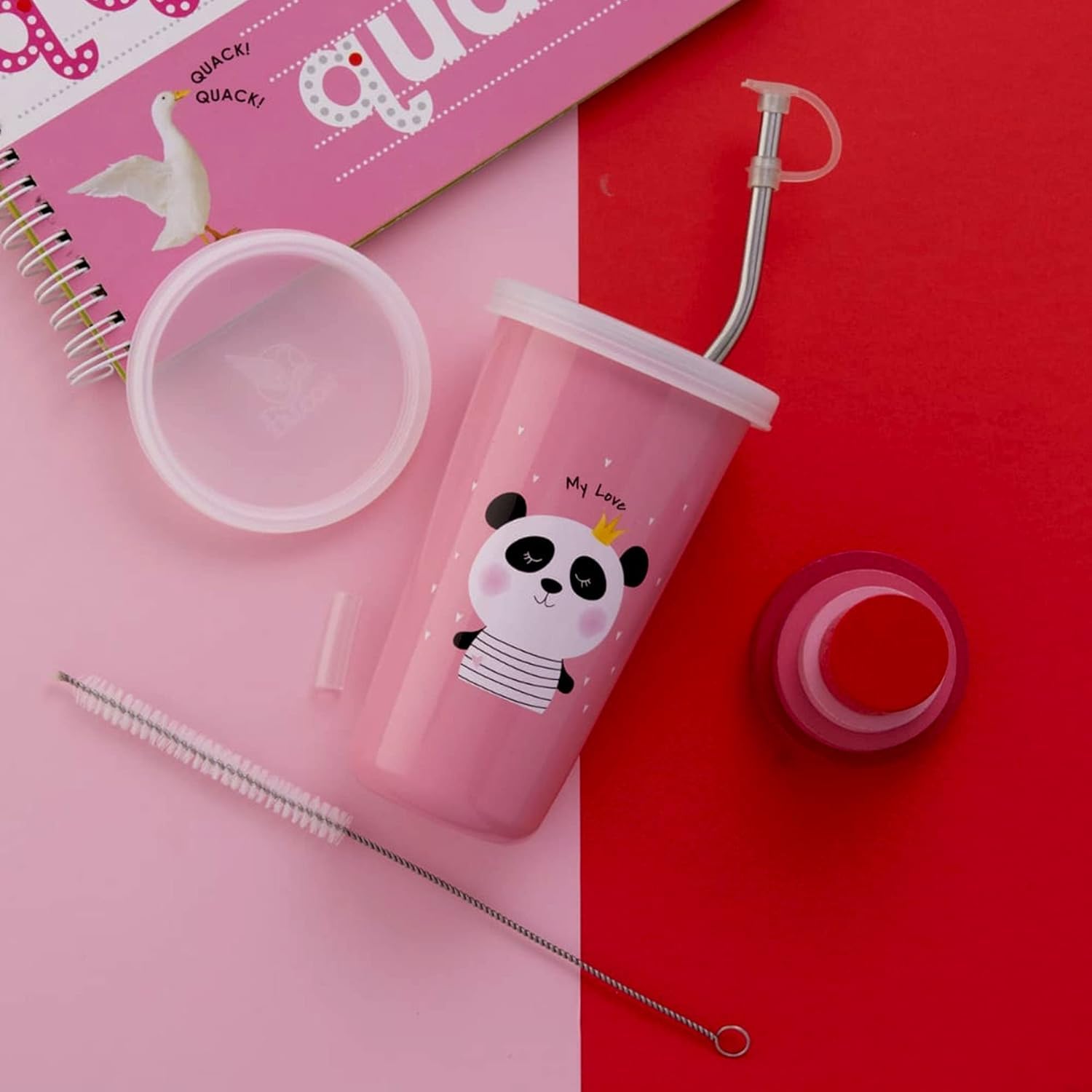 • package contents: 370ml steel glass -1p steel 18/8 straw - 1pBaby Spout-1p straw lid - 1p storage/travel lid -1p Straw Cap -1p Straw Cleaning Brush -1 p.