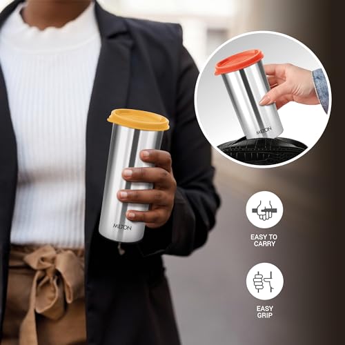 Introducing Stainless Steel Tumbler with Lid. This exquisite tumbler is just the right size ideal for carrying liquid food items like dal sambhar rasam butter milk juice water and other beverages. The tumbler is 100% Leak Proof with the snap-on lid making it convenient & hassle-free to carry without any fear of spillage. It has a wide mouth and base which makes it easy to clean.