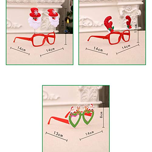 assorted colors: the adorable glasses are all designed in Christmas elements in classic Chritmas colors red green and gold; the styles are also various including Christmas bow Santa's hat snowman Christmas tree elk horn etc; each pair has flash powder on it that makes you sparkle under the lights and stand out at parties Ideal Christmas decoration: children and adults can wear these adorable glasses at Christmas parties to make you fashionable and to be the focus of the crowd makes your Christmas day impressive and memorable Material and size: made of high- quality plastic beautiful and elegant it can be used for many times; the length of each frame is 14cm and the width is 4.5cm suitable size for most children and adults Can be used as decorations in many occasions such as Christmas assembly party wedding birthday party etc can also used as photography props and cosplay props; you look adorable and in harmony when you and your family members wear these glasses together spending a memorable and impressive Christmas Quantity: each package comes with 9 different Christmas decoration glasses in different colors multiple choice can meet your different preference and makes you spend a happy and sweet day with your family or friends and so on