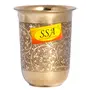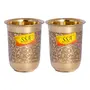SHIV SHAKTI ARTS Pure Brass Glass Tumbler Cup Embossed Curved Polo Design for Drinking Serving Water(2 Pcs = Vol - 250 ML Each)