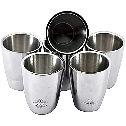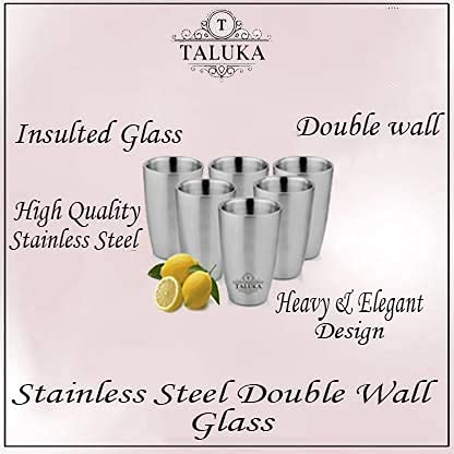 Taluka Stainless Steel Double Wall Insulated 300 ML Drinkware Glass Home Hotel Restaurant Tableware Set of 4pc