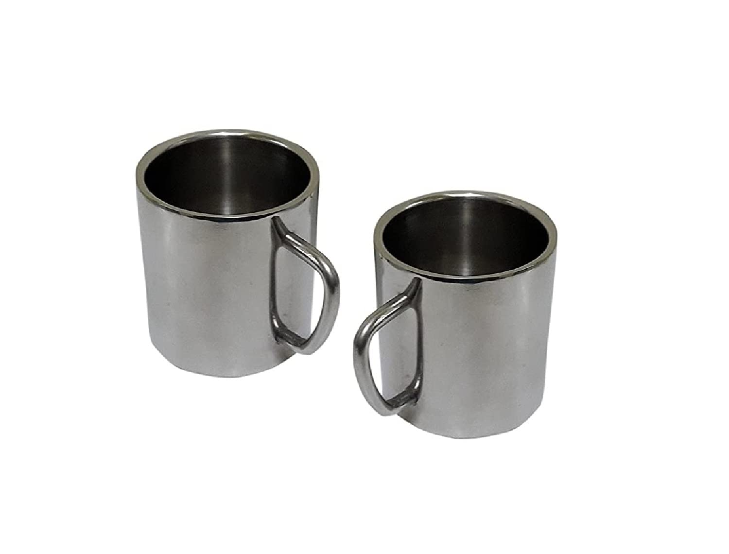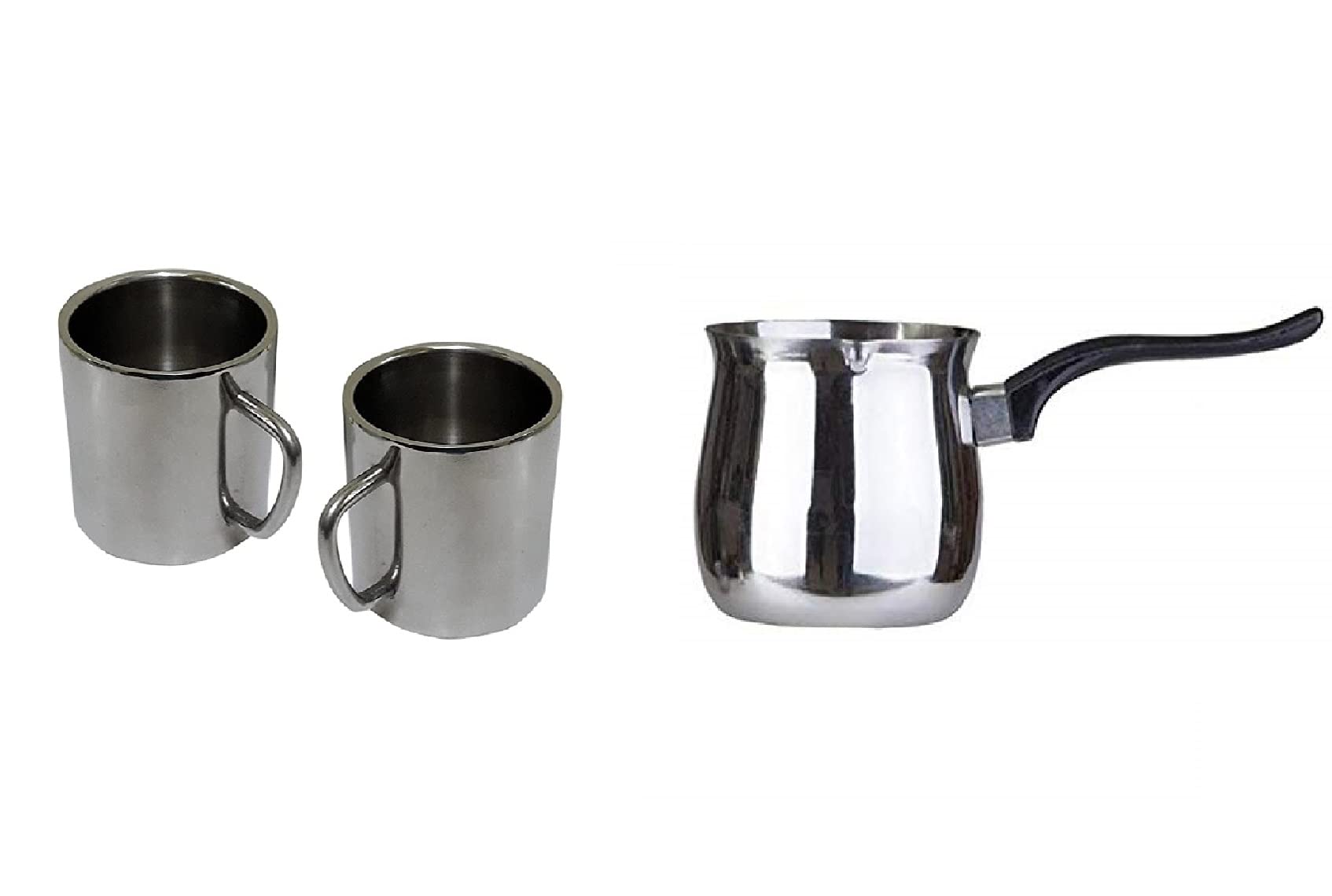 "Premium Durability - Made Of The Highest Quality Stainless Steel, Easy To Clean. Capacity 1000 ml, Rust Proof And Hygienic Can Be Used For Preparing Tea, Coffee, Warming Gravy, Melting Butter, Heating Up Sauces And More, High Durability And Heat Resistant Handle Is Contoured For A Nice Grip, Does Not Transfer Heat And Features A Hole On The End For Optionally Hanging From Your Pot Rack For Storage. Stainless Steel Set of 6 Double wall tea mugs which retain heat. High quality, breakage free and leak proof cup set. 300 ml, Product Dimension- Coffee warmer- 11x11x12.5 cm , Mug- 8x8x9 cm
