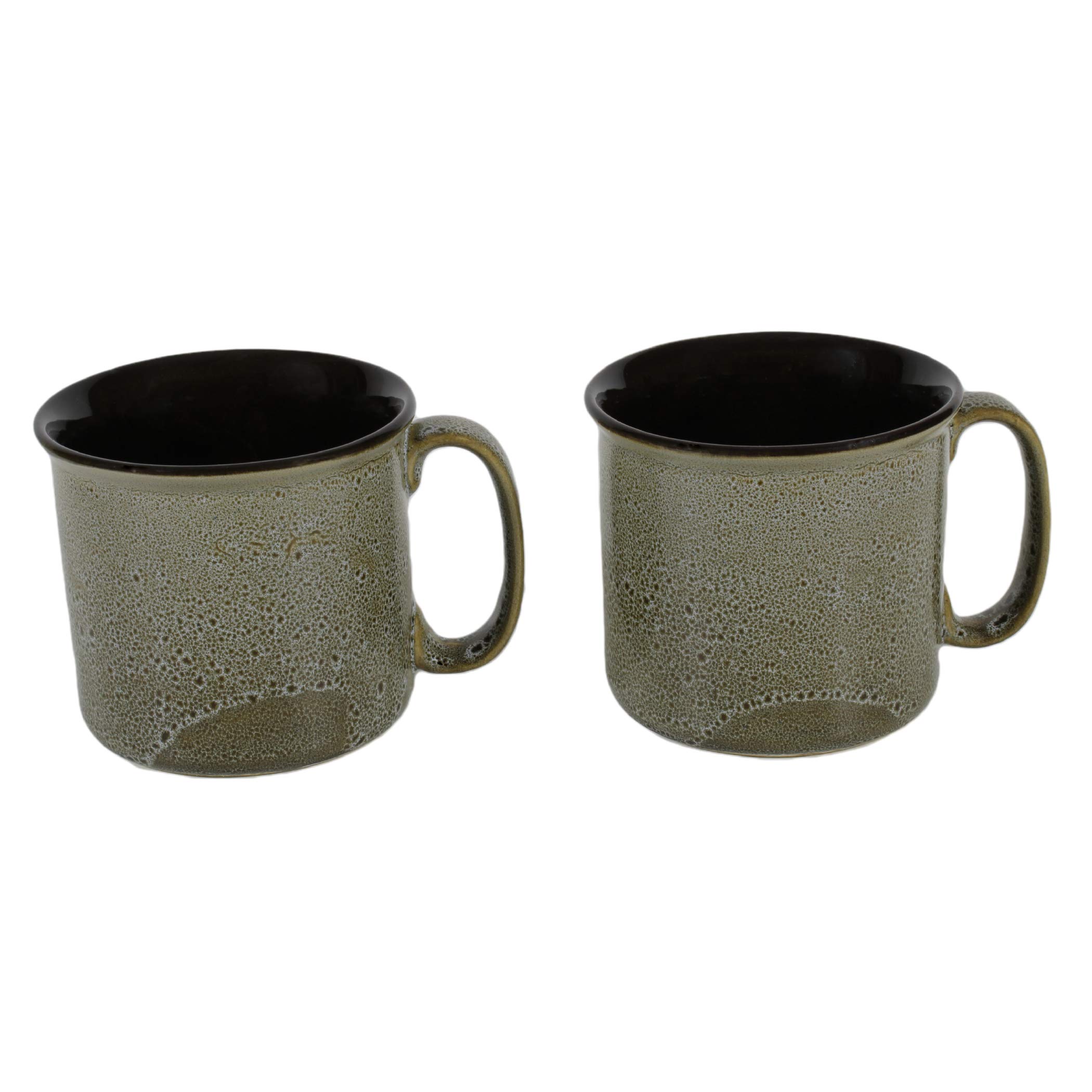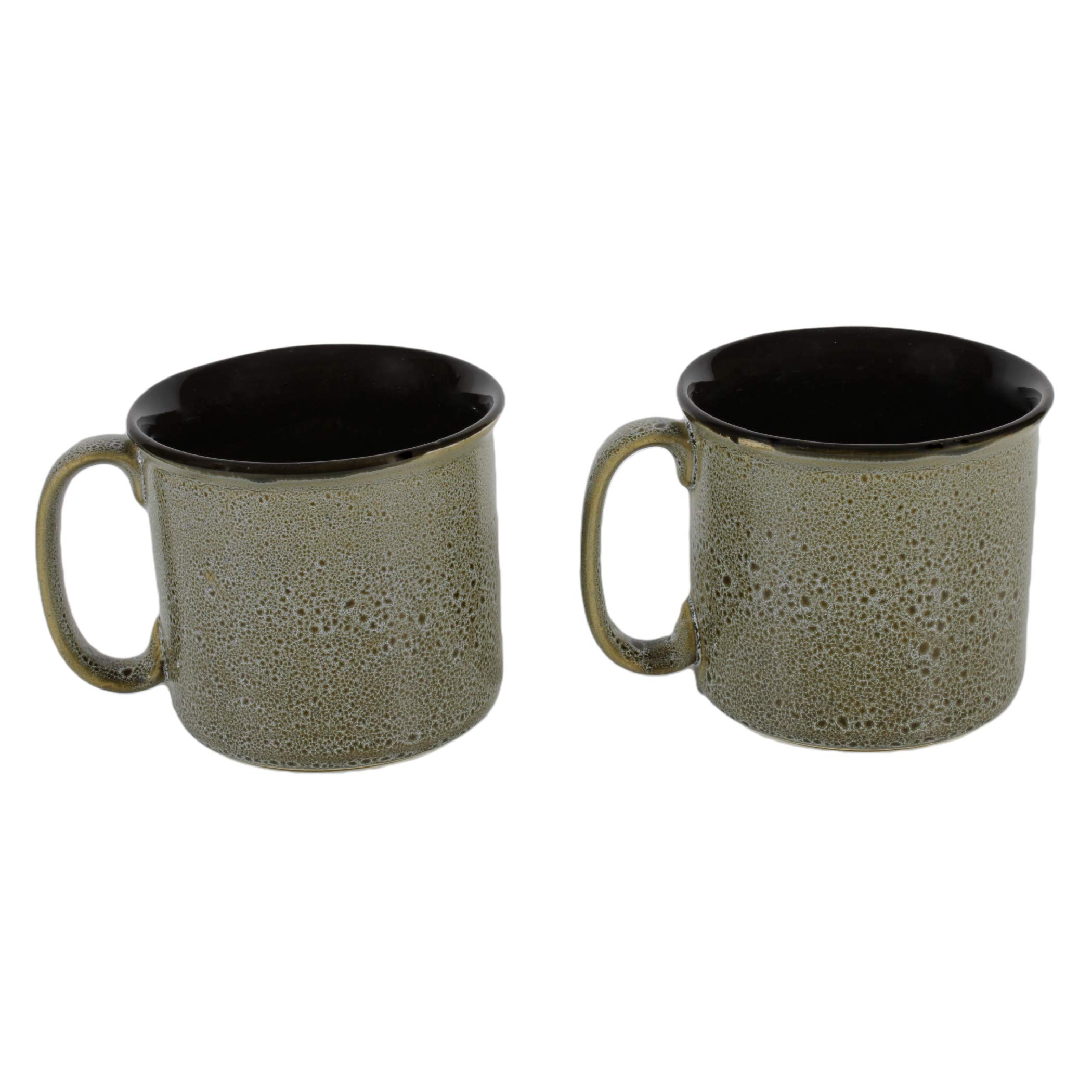 KHURJA POTTERY Ceramic Coffee Smoothie Cake Maggie Noodles Cappuccino Mugs 400ml Microwave Dishwasher Safe Set of 2 Brown