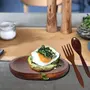 This dinner tray is made of natural Acacia hardwood which is lustrous and exquisite. The dinner plate is curved up so food wouldn't fall out. Gorgeous appearance makes it not only kitchenware for daily use but also make it a piece of work of art for decoration Sturdy durable and long-lasting with a natural rustic luster and a stunning grain pattern. The Wood of high quality that is sustainable easy to clean scratch-resistant and food-safe.