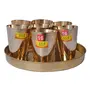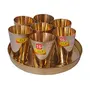 Shiv Shakti Arts® Pure Brass Glass Set with Plate Serving Purpose - Drinkware - Dinnerware Tableware (Silver Touch Khomcha Design 7 Glass in 1 Plate Set) 28 cm