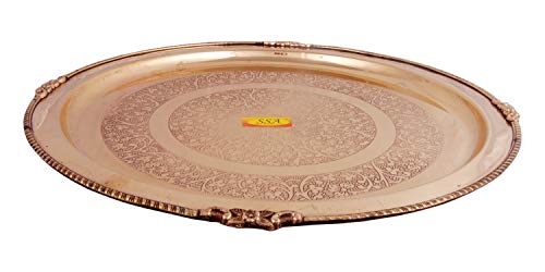 Shiv Shakti Arts® Pure Brass Plate/Big Thali/Serving Plate for Serving Food Tableware (Embossed Flower Eatching Design Big Size Full Dinner Thali Diameter - 14 Inch)-1 Pc Set