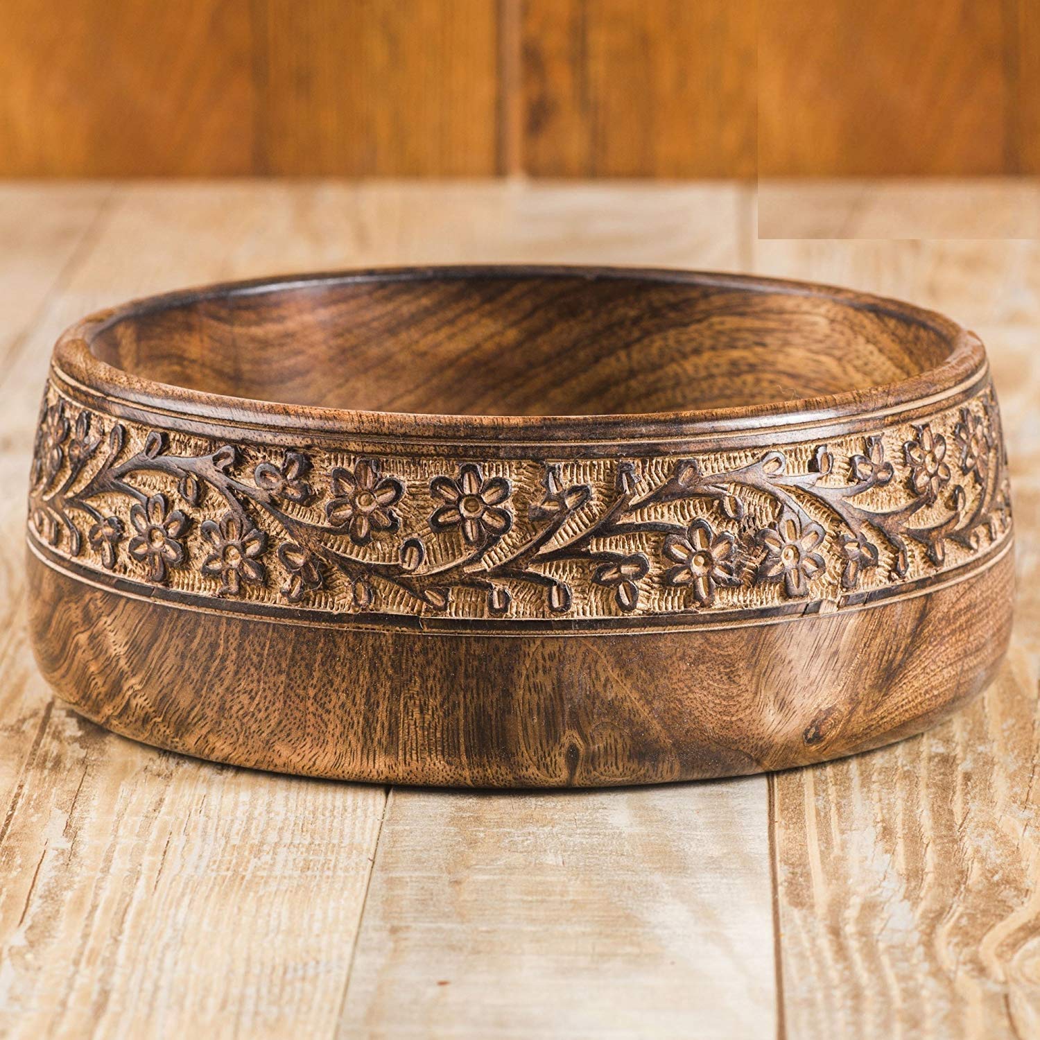 BIJNOR - METAL INLAY IN WOOD Wood Serving Snacks Bowl/Salad Bowl Mango Wood with Hand Carved for Breakfast Snacks Soup Serve-Ware Salad Bowls for Home Kitchen | Salad Bowl for Home