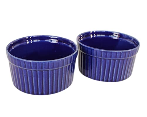 KHURJA POTTERY Ceramic Glossy Blue 150ml Ramekin Bowls Set Of 2 for Baking & Serving