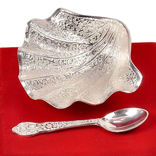 This silver polished pearl oyster shaped mouth freshener bowl set comes with a spoon. Made up of pure brass it is beautifully carved on the surface. Gift it or use it it is sure to be admired by all. The gift piece is prepared by master artisans of jaipur.