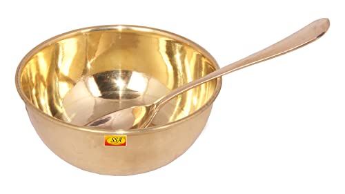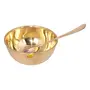 Shiv Shakti Arts® Heavy Gauge Pure Brass Pyala Bowl/Pooja Bowl/Katori Serving Bowl with Spoon Set - (Vol - 500 ML Each) Set of 4 Pcs.