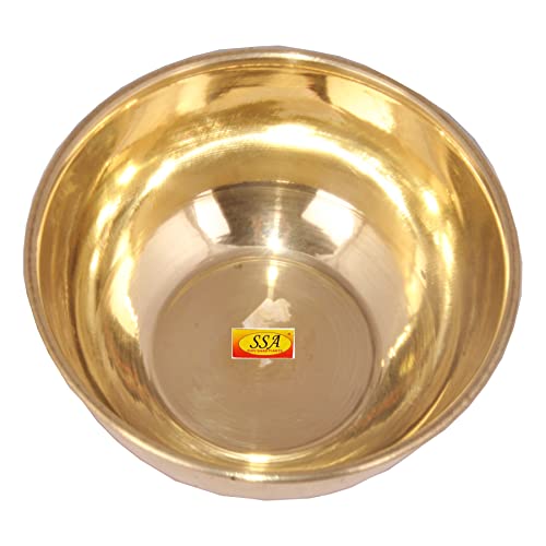 • Highly Durable Pure Brass Pyala Bowls / Katori with Spoon Set = Dimension : 5.5 x 12.5 cm (Height x Width)Capacity - 500 ML Approx Weight - 164 Gram Approx = Diameter Of Top - 12.5 cm|Brass Spoon Weight=40 gm Length=7 inch.