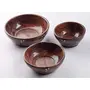 Bring home a combination of style and excellence with these high quality wooden dishes made by the of Saharanpur. Claim to fame: Handmade with sheesham wood Set has three dishes of three distinct sizes Circular molded with finish which makes them sparkle Adorned with carvings of metal which gives them an indigenous appearance Delicate botanical structures with complex carvings Strong and tough.