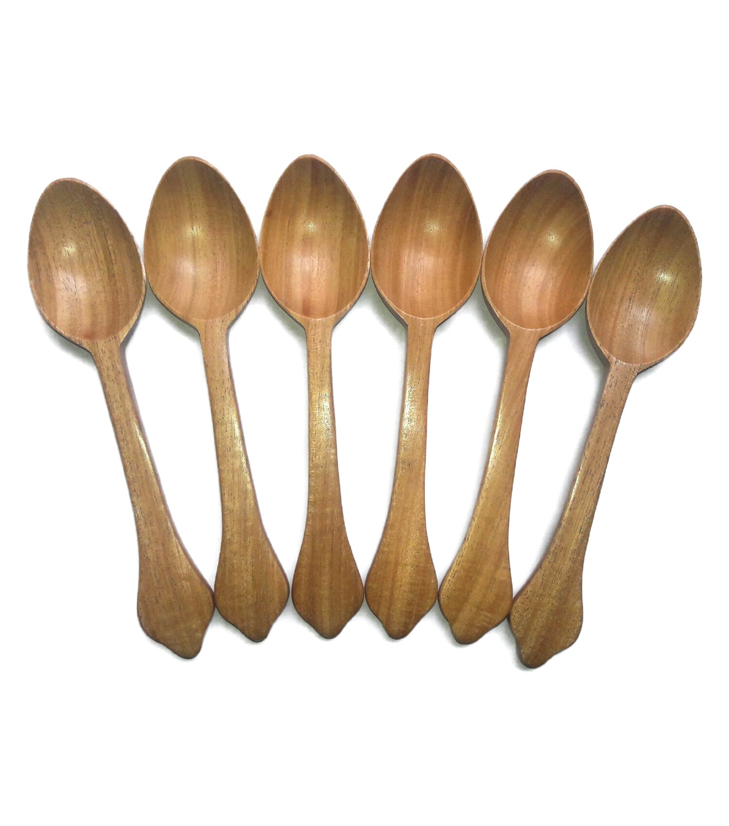 Set of 6 neem wood spoons (table spoon size) Natural and durable. Premium quality clear neem wood cooking ladle which is Beautiful sturdy and hand carved. Neem has anti-bacterial properties and a healthy option for the eco friendly and environmentally conscious people.