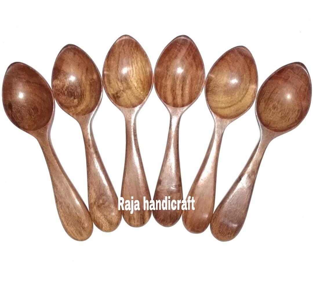 6.4inch Set of 6 wood spoons (table spoon size) Natural and durable. Premium quality clear wood cooking ladle which is Beautiful sturdy and hand carved. Sisam wooden has anti-bacterial properties and a healthy option for the eco friendly and environmentally conscious people.