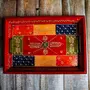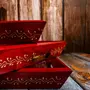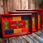 TERRACOTTA POTTERY OF RAJASTHAN Wooden Serving Tray Set- Handcrafted & Hand-Painted For Kitchen/Table & Home Decor/Dinning/Gifts/Restaurants/Living Room/Coffee Table (Set of 3 Trays Antique Red Rectangular)