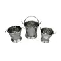 Bucket is manufactured in stainless steel, extremely durable as it is rust, abrasion and stain resistant, Specially made for home, restaurant, bars and catering services, Easy to use and clean. Very helpful, handy and convenient, beautiful product, An Essential Indian Dinnerware to present Indian Foods like Curries, Daal, Biryani, Condiments & for Authentic Indian Dining Experience, Two layers of metal with air cushion ensure that the food stays warm much longer, Bucket 1-12x12x11.5, Bucket 2- 10.5x10.5x11, Bucket 3- 9x9x9 cm.