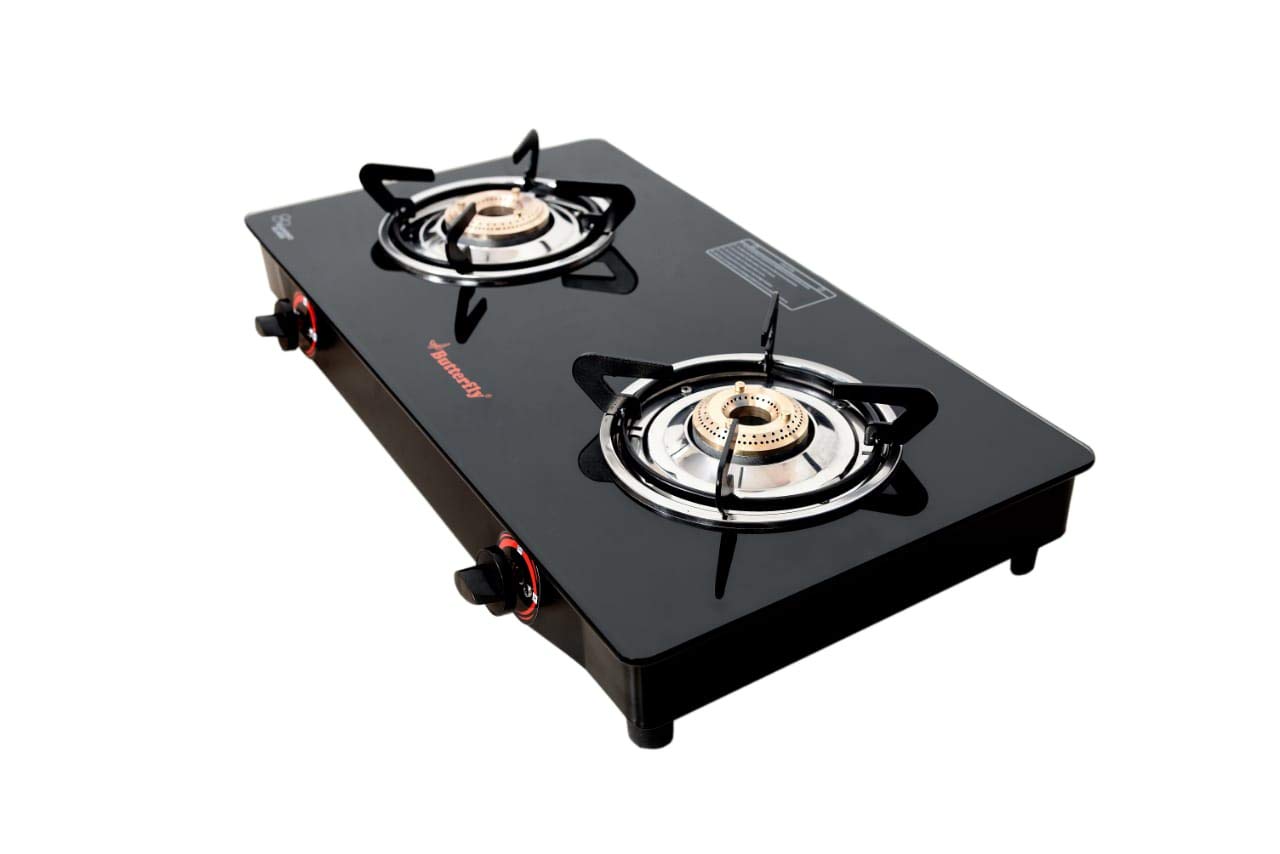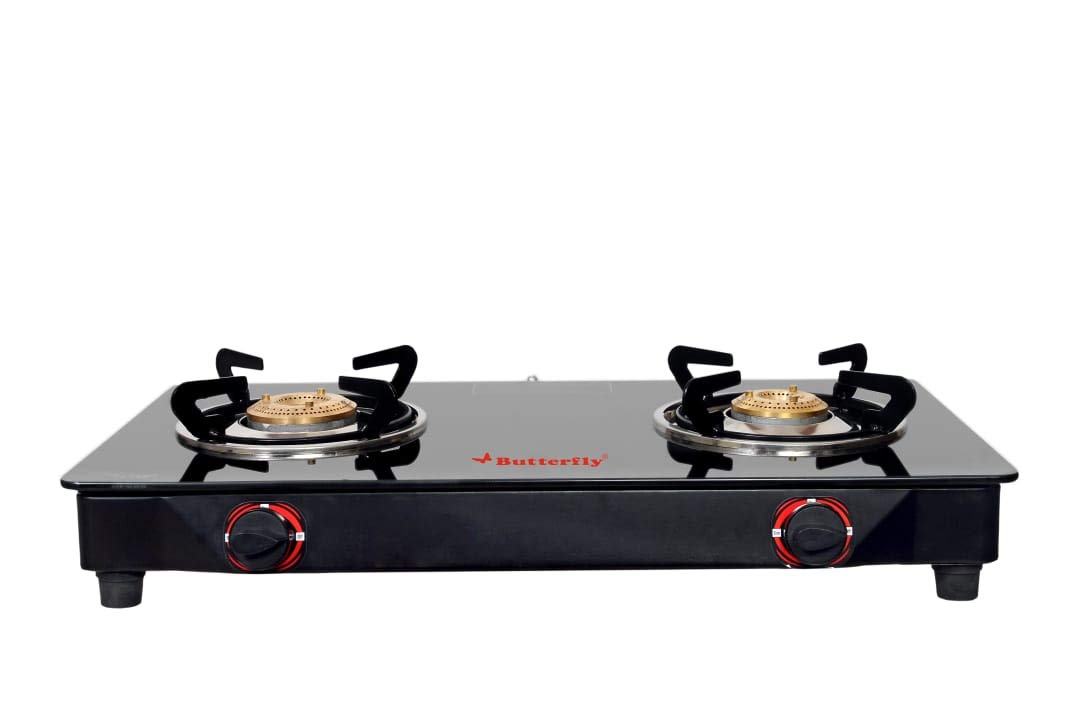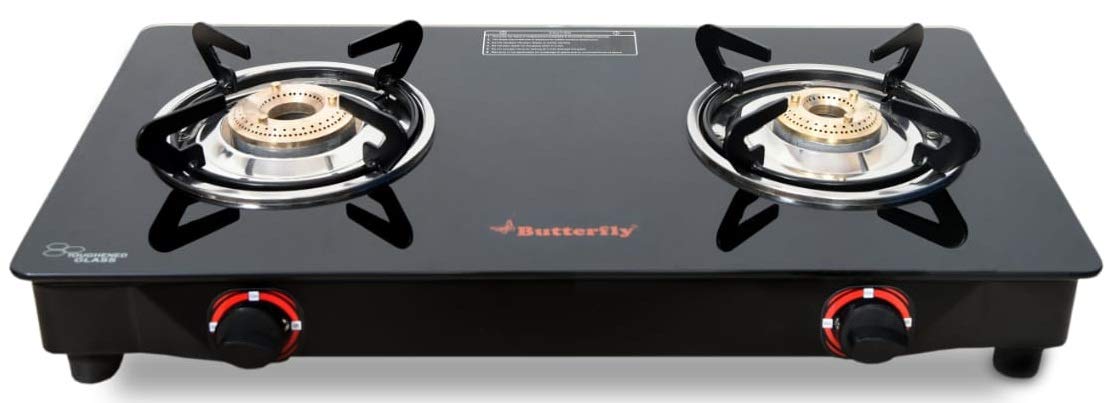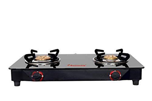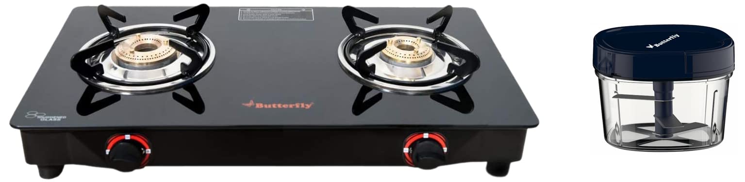 Butterfly Premium Vegetable Chopper 600 Ml Blue & Smart Glass Open 2 Burner Gas Stove, Black