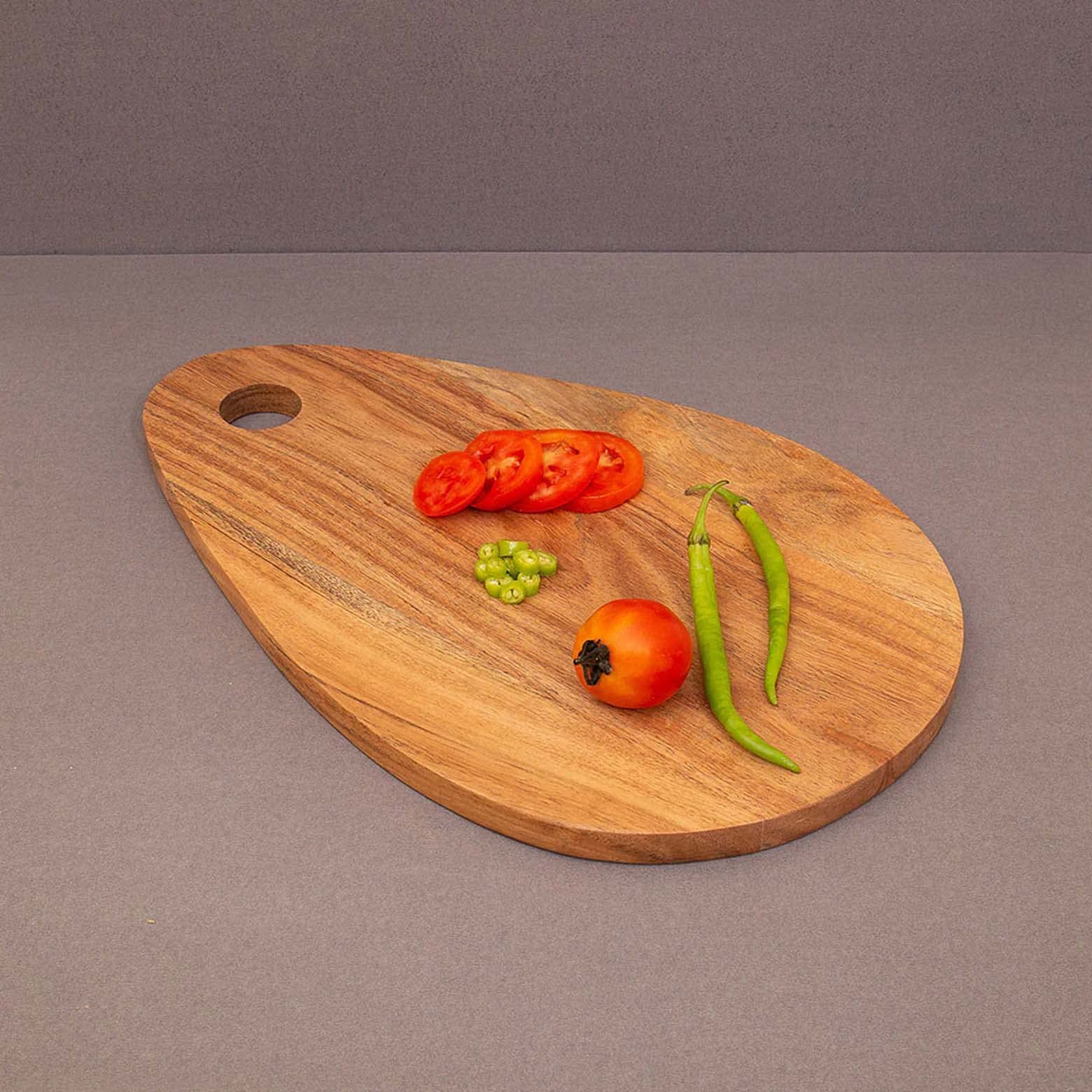 wooden chopping board best suited for cutting fruits and vegetables. Also be used for serving purpose. Sturdy handle with wider base gives a secure grip and helps reduces slips. Can be used to transfer uncooked pizza dough cooked pizza and homemade breads pastries in and out of the oven pan or outdoor charcoal grill with ease. High quality wooden Chopping board which is purely Natural very handy and hygienic way of cutting. Nontoxic food grade material is used and anti-skid mechanism also durable and easy to clean. Ensures perfect cut enhances the durability of knife. Can be used for cutting all types of fruits and vegetarian / Non-vegetarian food easily. So from now use this Chopping Board for your Kitchen and be safe. It has a small hole in the middle which can be used for hanging the board for drying etc. It contains a leather strip which can be used for hang the board Exquisitely designed our chopping bards can also be used as serving trays for cheese bread or fruits. The actual image might vary due to natural variations of wood. Washing Instructions: Wipe with a clean cloth with mild detergent and air dry. Do not scrub.