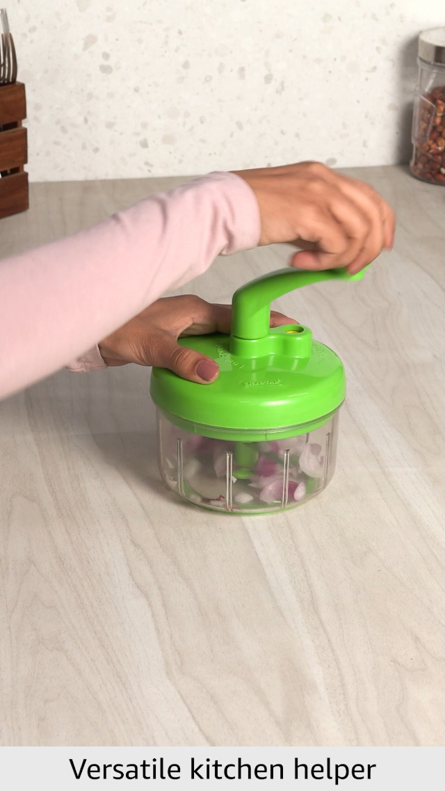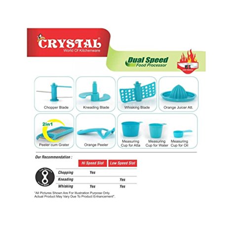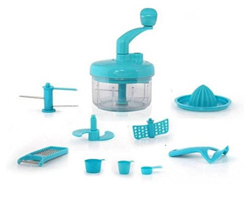 Crystal plastic 7-in-1 mini food processor is made of food grade plastic. You can use it for various functions like chopping mixing and grinding. Multiple applications in a single unit and is manual in function.