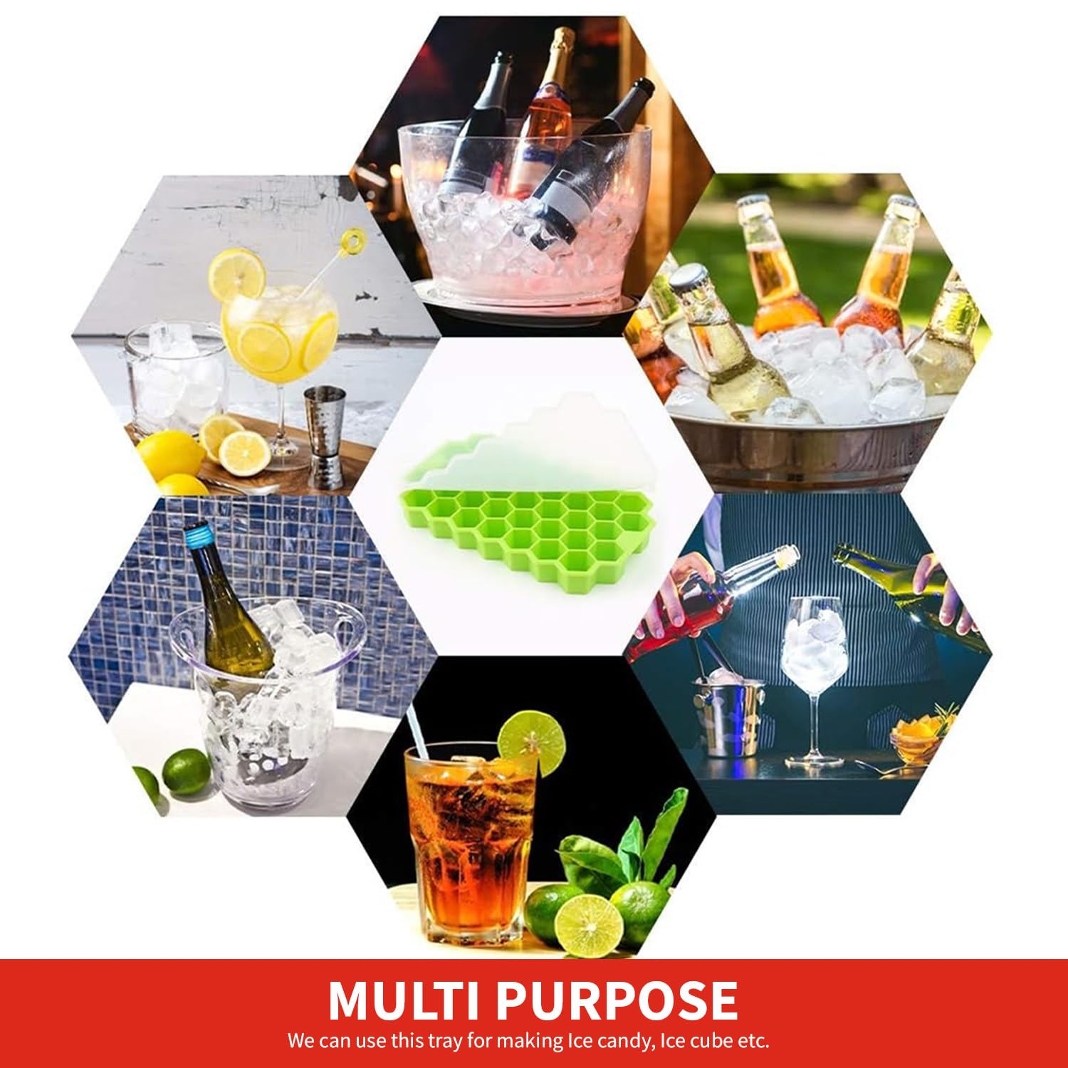 PANCA Ice Cube Tray Silicone for Freezer Flexible Shape Honeycomb for Chocolate Cake Maker Mould Chilled Drinks Reusable Kitchen Accessories Items (Multi Color)