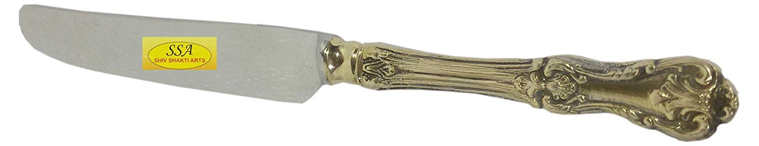 SHIV SHAKTI ARTS Handmade Pure Brass Deisgner Butter Knife Length=8.5 inch