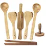 For those who love to cook, BuzyKart presents this beautifull Wooden Kitchen tool pack of 7. BuzyKart Traditional Hand Carved Cooking Accessories, Out Of Best Quality Long Lasting Processed Natural sheesham Wood. Unmatchable Elegance Adorning Your Lifestyle . It Reflects On That Artistic Side Of You And Dwells In Perfection Of Artistic Work. Add It To Your Kitchen Accessories Before You Regret Losing It To Others. It Contains 4 Cooking Spoons, one masher, one rolling pin (belan)and a wooden chimta. Which Can Be Used For Different Purposes. Perfect For Serving Meals, Our Set Of 3 Piece Cooking Spoon Wooden Ladle Features A Soft Handle For Comfort And Ease Of Use Whilst Handling. The Wooden Curve Spoon Is Ideal For Serving Variety Of Dishes. With A Hole In The Handle That Can Be Hung Over A Hook Out The Way, Our Set Of 3 Piece Cooking Spoon Wooden Ladle Can Be Stored Efficiently To Keep Your Kitchen Surfaces Neat And Organised. Wash them carefully with soft and smooth scrubbers to avoid scratches.