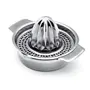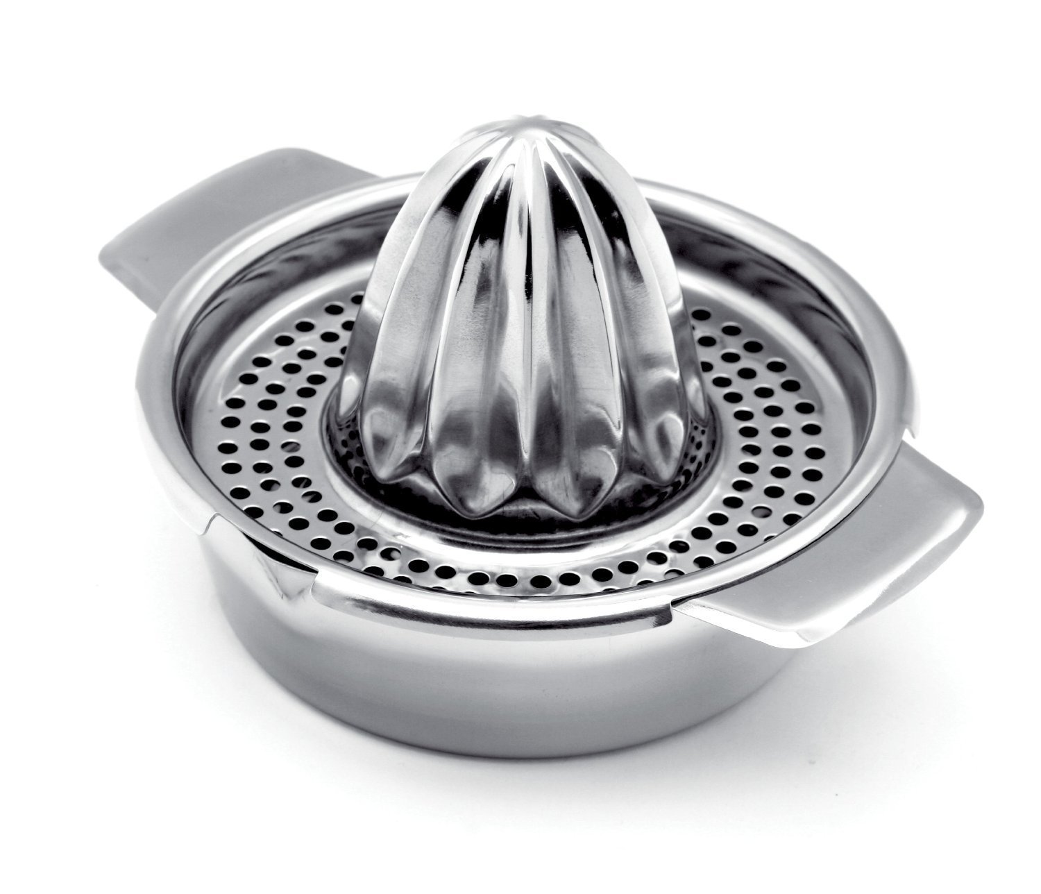 Made of stainless steel , the citrus juicer comes with a filter to strain pits. This smartly designed citrus fruit squeezer handily juices oranges, lemons , limes and grapefruit. Its strainer catches pulp and seeds, allowing juice to collect in the base. The base has a spout for easy pouring. Great for juicing, cooking or bar use.