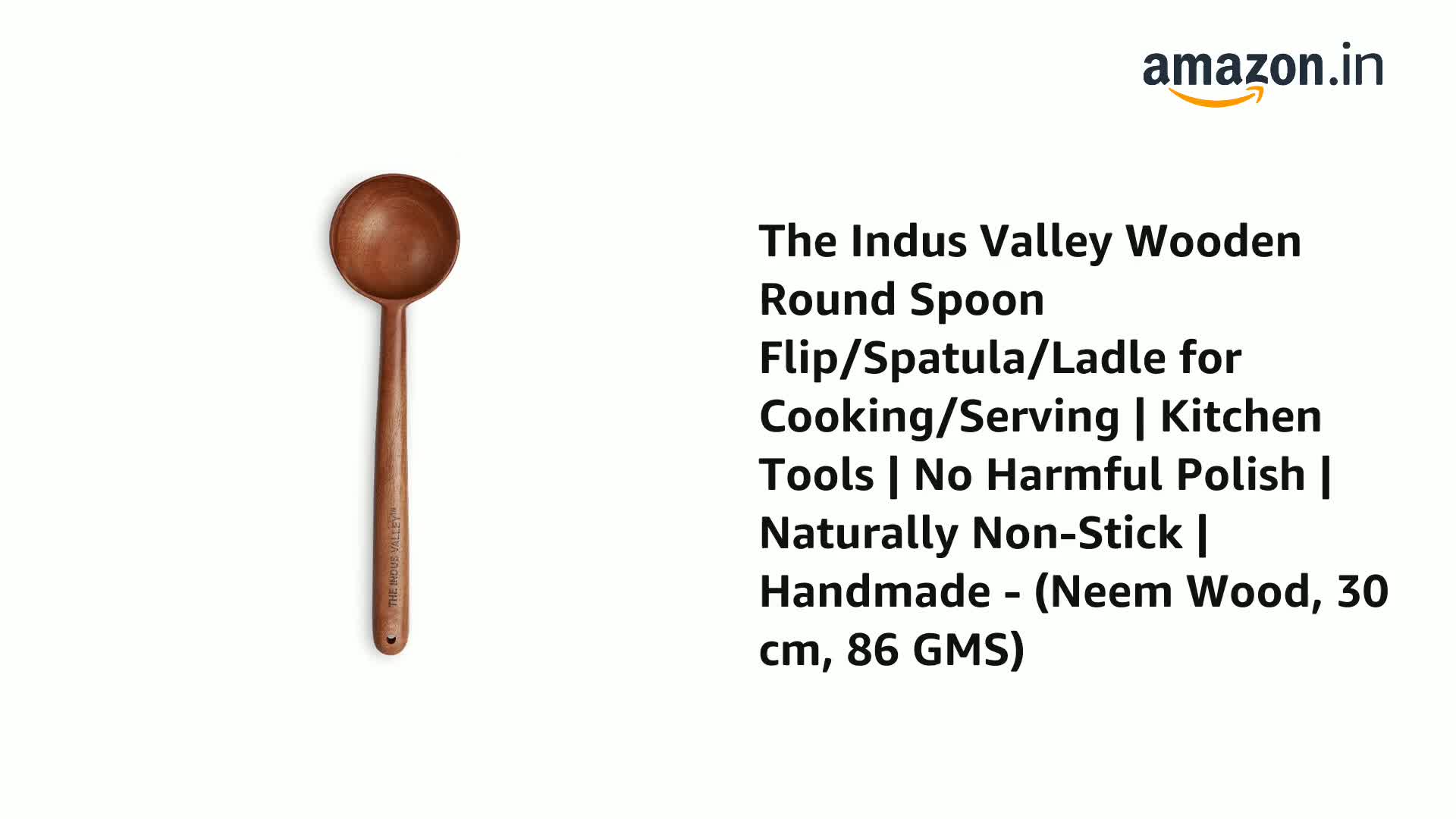 The Indus Valley Wooden Round Spoon Flip/Spatula/Ladle for Cooking/Serving | Kitchen Tools | No Harmful Polish | Naturally Non-Stick | Handmade - (Neem Wood, 30 cm, 86 GMS)
